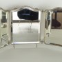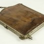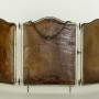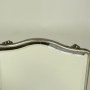 Tri-fold beveled mirror. Silver plated frame, Leather on the back side of mirror.