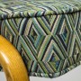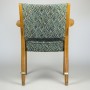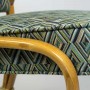 Hugues Steiner designed this line of furniture in the 1950’s.The chair frames are made of steam bent oak, a style of fabricating furniture in the early 1950’s.This model is sought out since it has the armrests.The elegant brass bands hold the chair together and create a supple chair that adapts to your needs. Newly uphol- stered with a fabric evocative of the period.