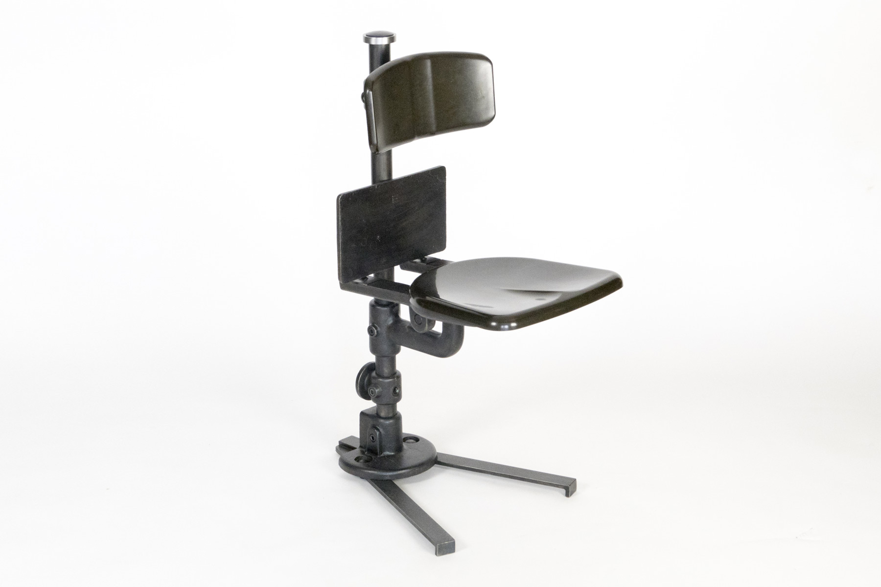 Bakelite 1930s jump seat on steel base. Gun metal patina base.