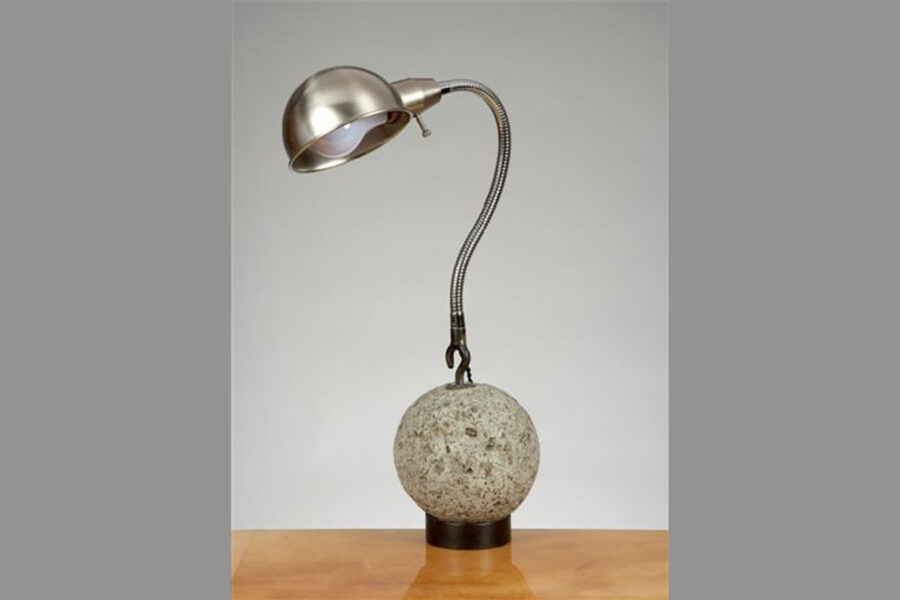 “Limoges” porcelain and brush steel table lamp. (Limited Edition)