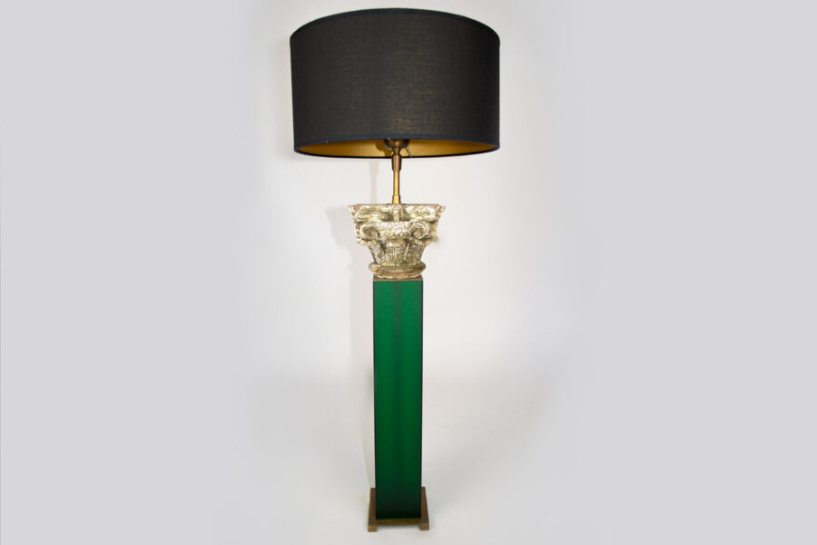 This table lamp has a 18th century carved wood capital