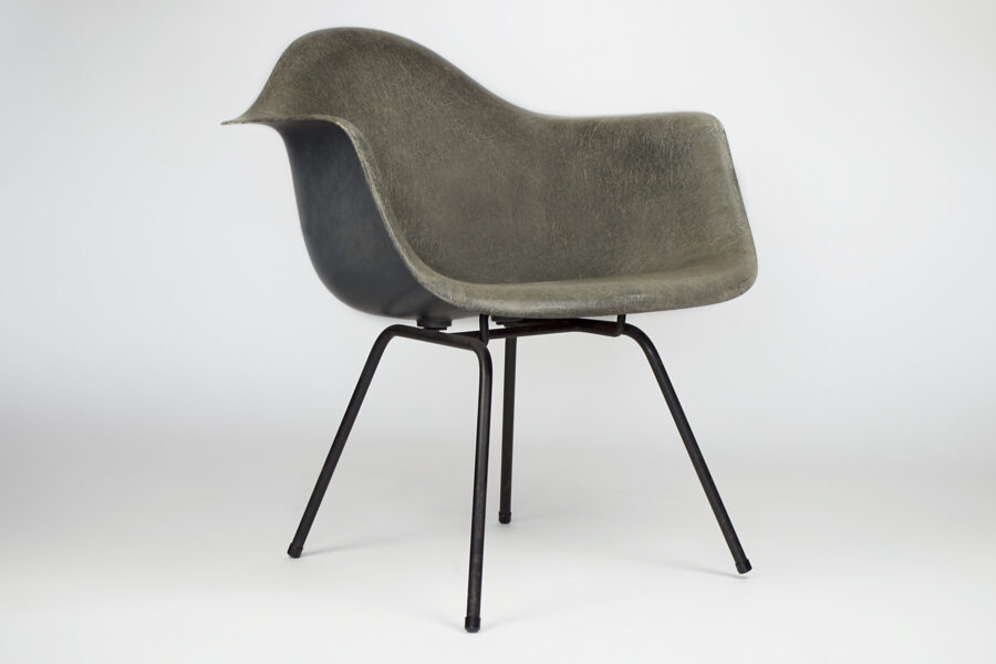 1950 Zenith Herman Miller chair with its H base. Fiberglass shell elephant hide grey