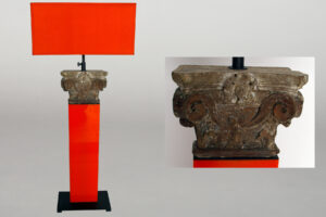 19th Century Carved Wooden Capital Table Lamp