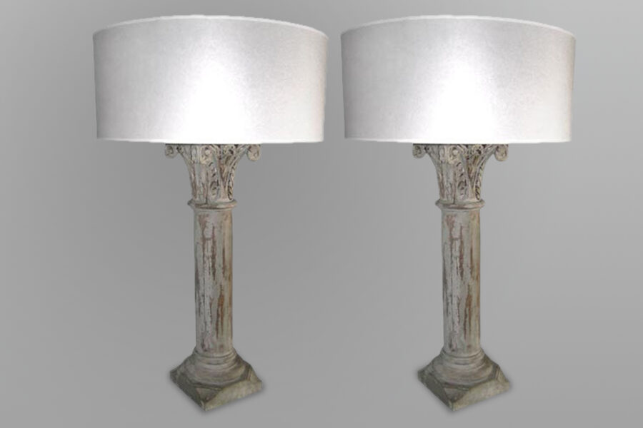 Pair of Carved Wooden Lamps