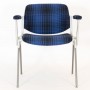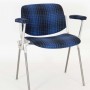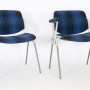 Two comfortable armchairs and two side chairs, perfect for a dining room table. They have been restored and reupholstered in a plaid wool fabric. The frames are in cast aluminum. Very striking design.