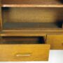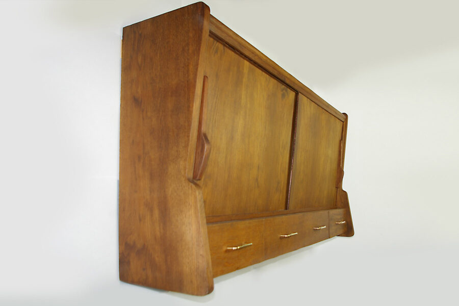 Remarkable oak wall-mounted cupboard. Four drawers with brass handles four adjustable oak shelves.
